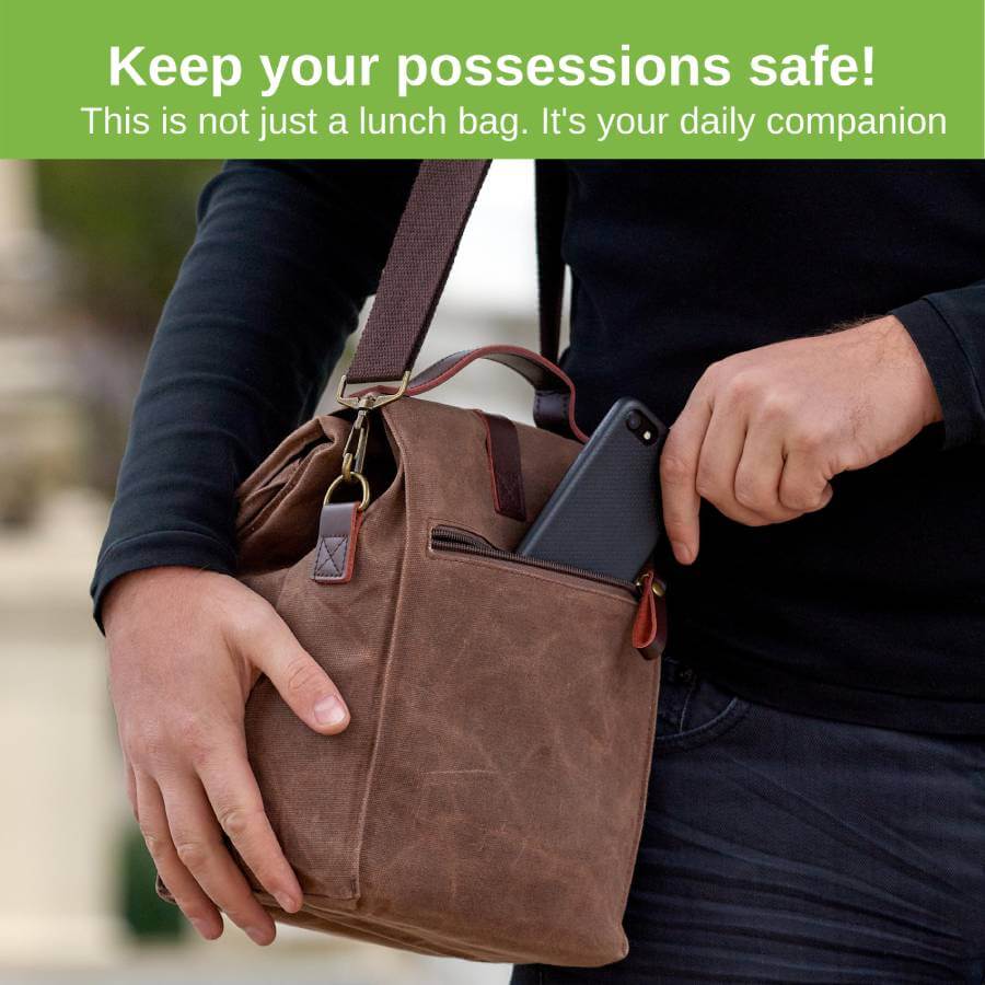Our women lunch bags for work are made of waxed canvas material which is food-friendly, 100% organic, and biodegradable. Also, given to the wax later, it is water-proof that lets you carry the bag on rainy days without being worried about your lunch getting wet. You can easily re-wax this waxed canvas lunch bag to make it look fresh and new after a period of extensive use. Rewaxing literally takes a few minutes.