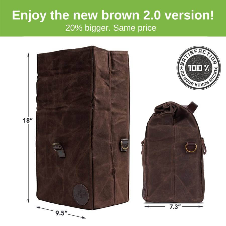 We have had a few brown bags from our old stock (end of 2019) on Amazon which showed signs of reaction when the bag was getting wet (the wax layer in contact to water could lead to white spots, a problem that could be solved by rewaxing the bag). We took 200% responsibility for this matter. The new stock of the brow lunch bags has arrived at the Amazon warehouse beginning of March 2020 and every bag has this issue resolved. Also, as a form of respect and appreciation for our clients, we have made several improvements for this new version of the waxed canvas lunch bag: we increased the volume of the bag by 20% and the middle strap is longer in order to smoothly secure the bag.